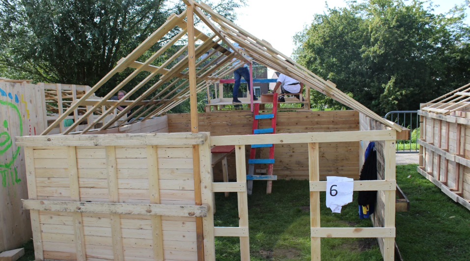 - Maandag 18 augustus van 10.00 – 17.00 uur en dinsdagmiddag 19 augustus van 13.30 – 17.00 uur bij het bouwen van de hutten